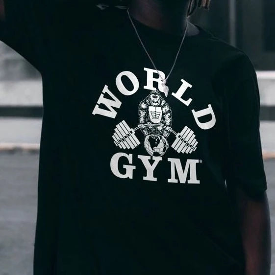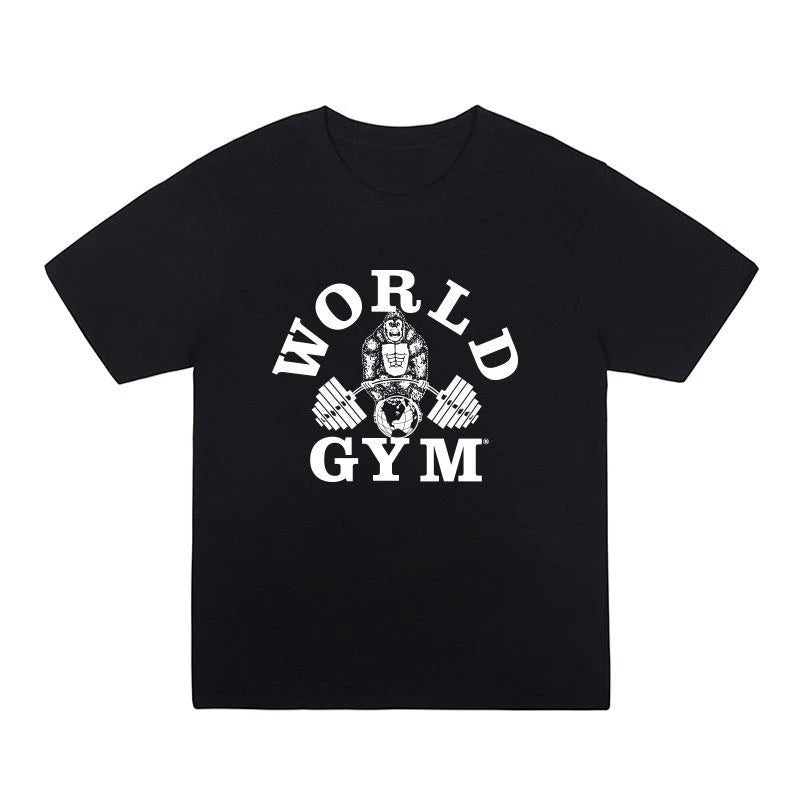 Camiseta de manga curta de algodão puro para academia com gola redonda