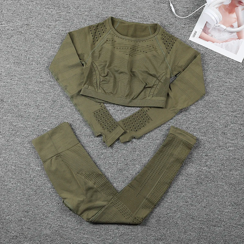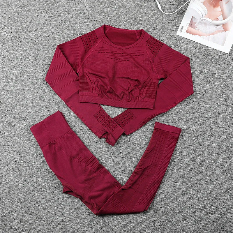 Roupas esportivas femininas Camisa de manga comprida Leggings de cintura alta em malha