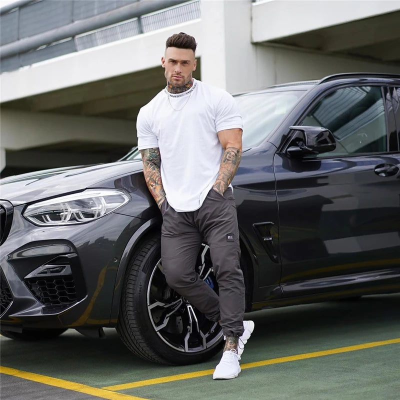 Camiseta Masculina Fitness 2024 – Algodão, Manga Curta, Slim Fit para Treino e Musculação
